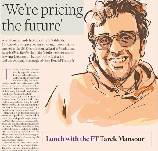 As I’ve written about before, I find this vision genuinely compelling. Much of our lives are about making decisions under uncertainty. Information helps us make better decisions. And prediction markets—where individuals, freely pursuing their own incentives, generate a public good in the form of a clearer shared picture of a complex world—represent a fascinating mechanism for the digital era.