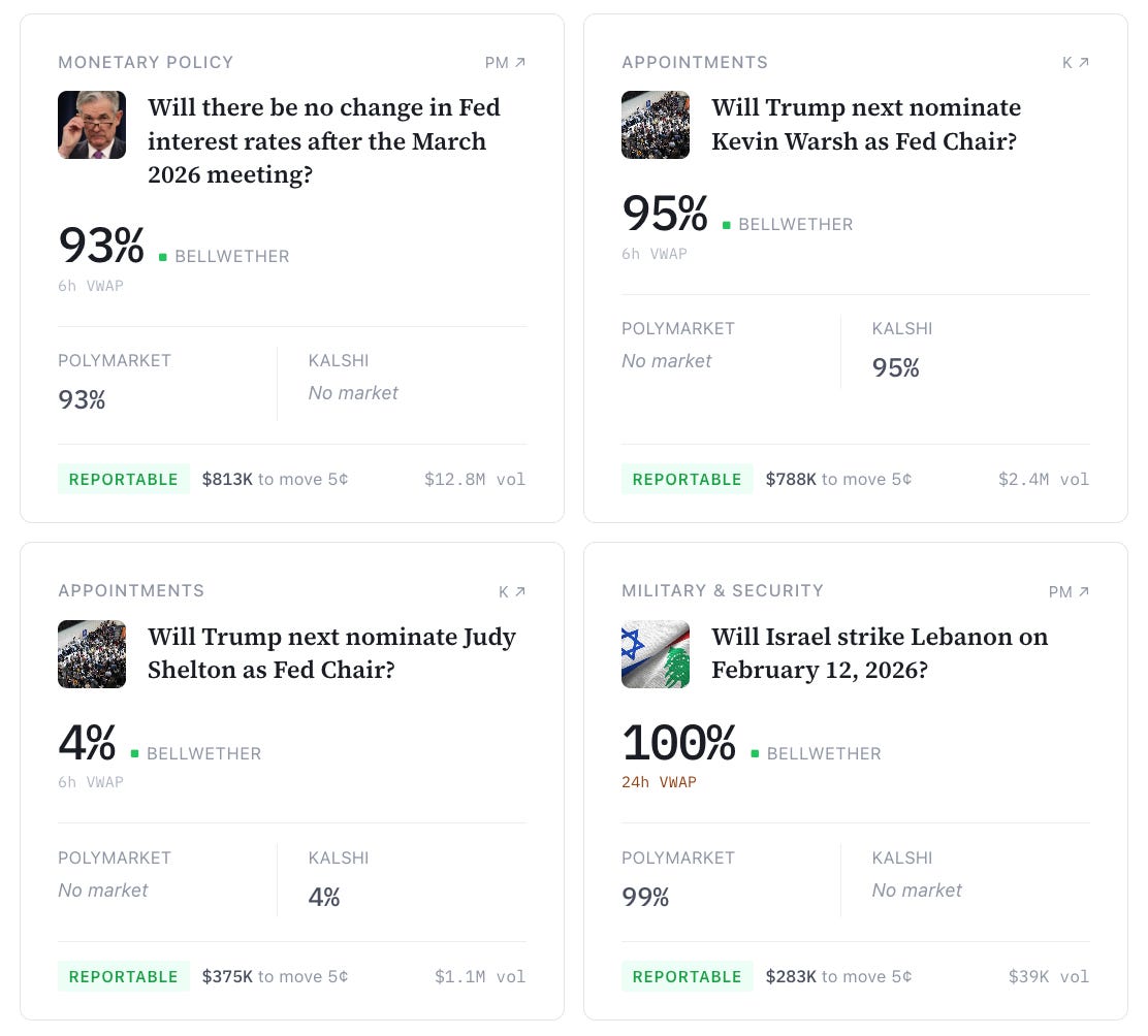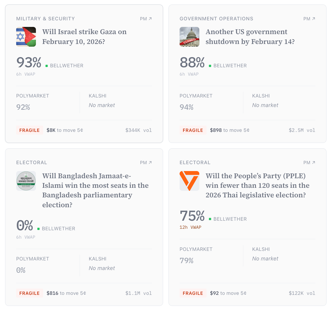 Based on this definition, we find that only 1.3% of all political markets listed on Kalshi and Polymarket are reportable today. Below are some examples of reportable and fragile markets.